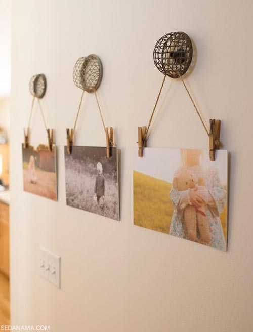 استفاده از آویز لباس برای نمایش عکس روی دیوار
